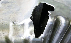 Именно расположение поддона способствует его частым повреждениям в результате ДТП или наезда на какие-либо выступающие предметы, элементы проезжей части. В таких случаях и требуется срочный ремонт поддона двигателя. Иначе мотор может выйти из строя уже через несколько минут эксплуатации.